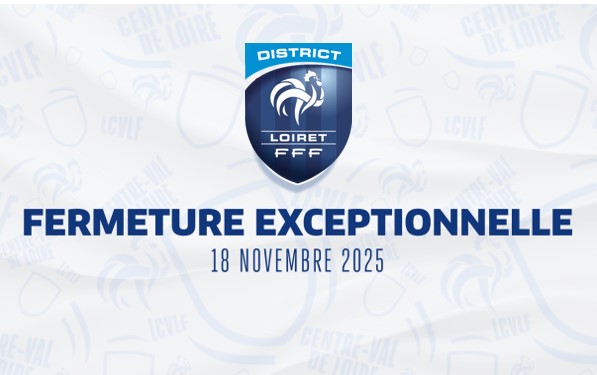 Les services administratifs du District seront exceptionnellement fermés ce mardi 18 novembre 2025 en raison de l’organisation d’une réunion interne au siège de la Ligue Centre Val de Loire.