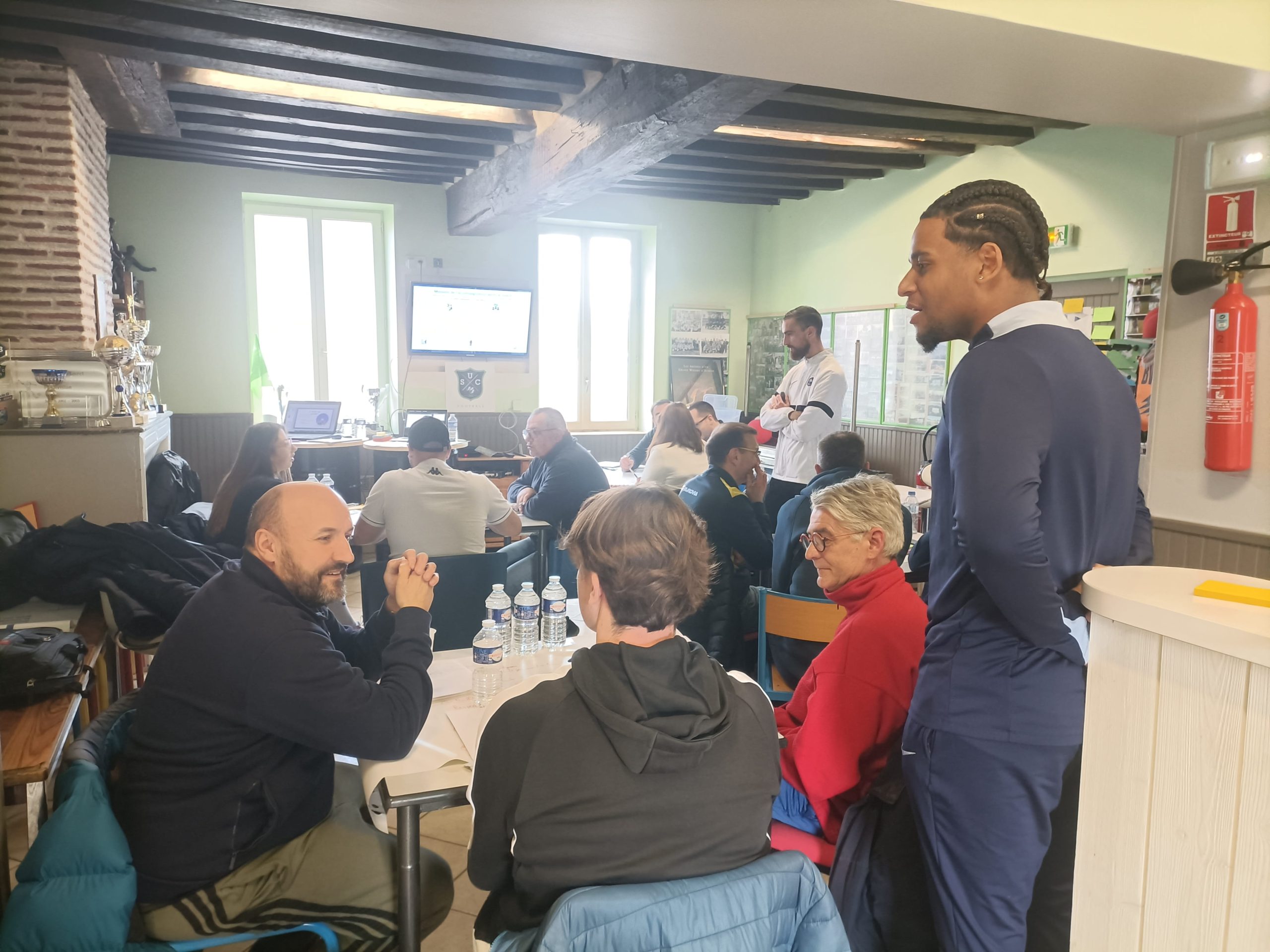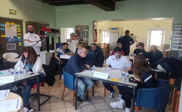 Animée par trois formateurs du District : Philippe MANSO, Téo DISCAZAUX et Moussa LY, la séance portant sur le module « Accompagner une équipe U12 à Seniors » a réuni 13 participants issus de 6 clubs du District.