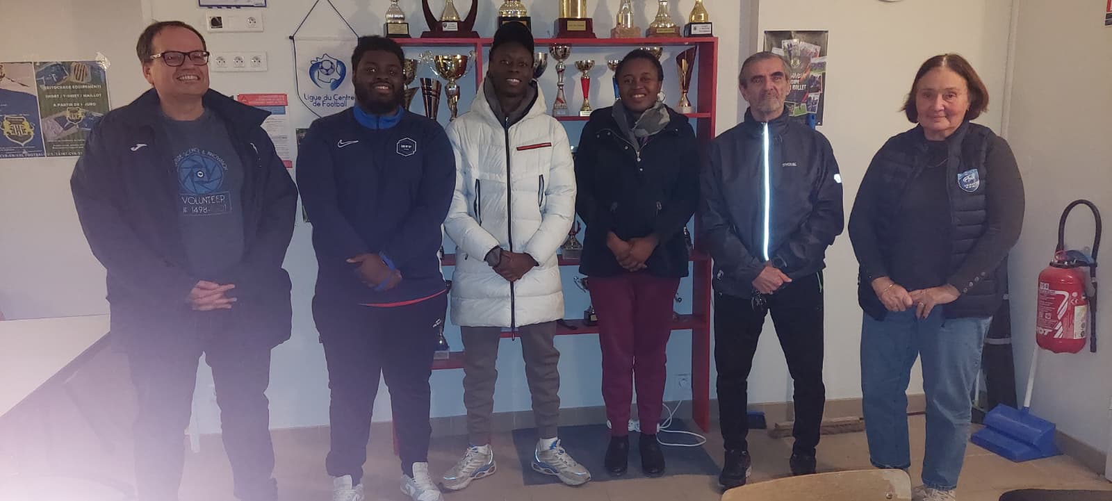 Lundi 24 novembre, le District représenté par Eric Demaison Président Délégué et Marie Chantal Perez membre du Comité Directeur ont été reçus par le club de Saint Cyr en Val.Cette rencontre conviviale et riche en échanges, s’est déroulée en présence des membres du club, dont Cyril BLOT secrétaire, de Régine GALPOT dirigeante, de Robert FOUGOU éducateur et des deux alternants Waris DIOP et Frédérico RODRIGUES.