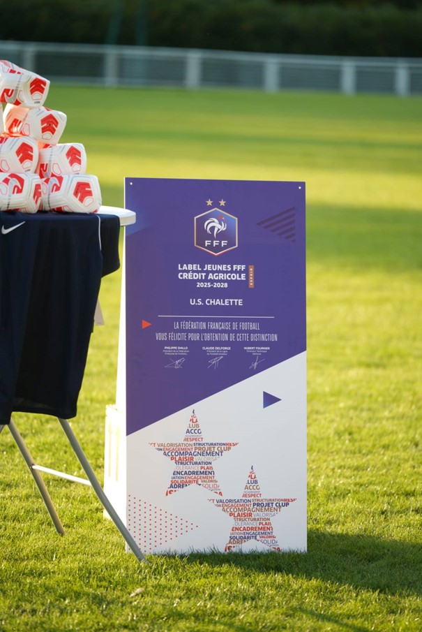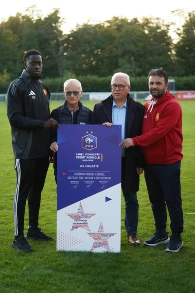 Le club a reçu ce lundi 13 octobre 2025 sur la pelouse du stade de la Garenne, le label FFF Espoir des mains du Président du District du Loiret Benoît LAINE, accompagné de Michel LALUQUE, membre du Comité Directeur et Président de la Commission Animation, et de Manon GEORGES, Conseillère Technique en présence du Président de l’US Chalette, Serhat Yildirim, du Maire adjoint délégué aux sports Christophe Raimbault et de la Présidente du club omnisport Karine Ferreira.