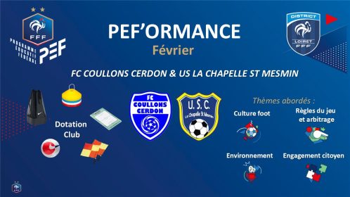 Félicitations aux clubs de l’US LA CHAPELLE ST MESMIN et FC COULLONS CERDON pour leur engagement actif au mois de février !
