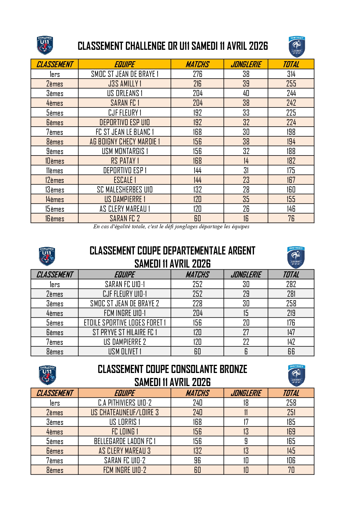 Résultats Challenge U11 à Dampierre en Burly